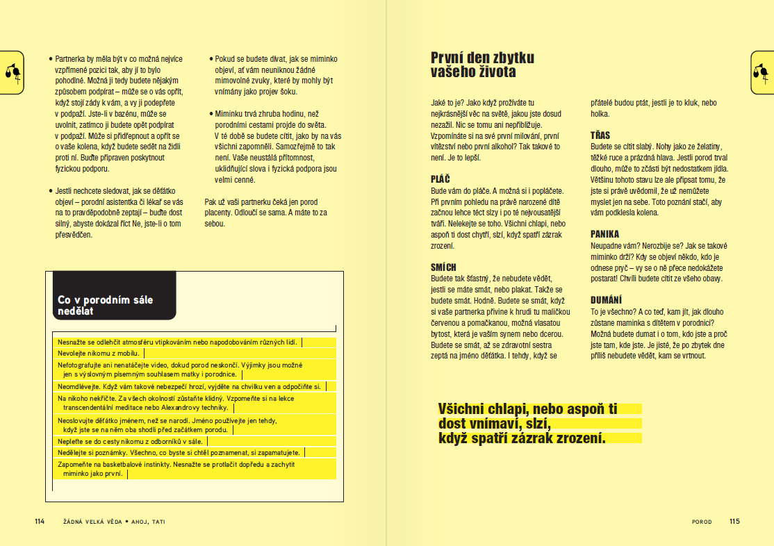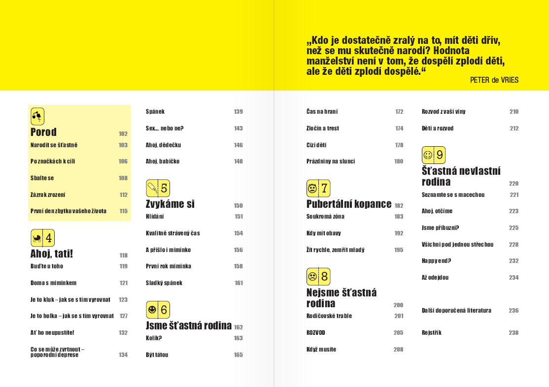 Možná se zanedlouho stanete tatínkem. Nebo jím už jste, ale chtěl byste v tom být trochu lepší. V obou případech obsahuje tahle kniha všechno, co potřebujete vědět, od nástrah početí po návod, jak si udržet autoritu u dramaticky dospívajícího potomka. Že už tohle všechno znáte jaksi od přírody? Možná ano, pak jste ale výjimka. Otcovství totiž není vrozená schopnost (jak se dříve mínilo), naopak je to náročná dovednost, která – má-li se zvládat dobře a s láskou – vyžaduje přípravu a trénink stejně jako tenisový mač nebo podnikání.