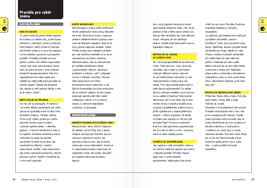 "Recenzovanou příručku napsal muž. „Prostý táta“, opakovaně se hlásící k mužskému pohledu na výše uvedené záležitosti. Vychází z postoje: Být otcem není žádná velká věda, jen se to tak někdy může zdát. Text publikace je vtipný, dobře se čte. Přehledná a výrazná je i grafická úprava. Jistěže jde o tzv. populárku. I vysoce erudovaným odborníkům a zvláště pak odbornicím však velmi vhodně připomíná zásadu: Ryba se chytá na to, co chutná ji, ne na to, co chutná rybáři." – Tomáš Novák, poradenský psycholog, celá recenze