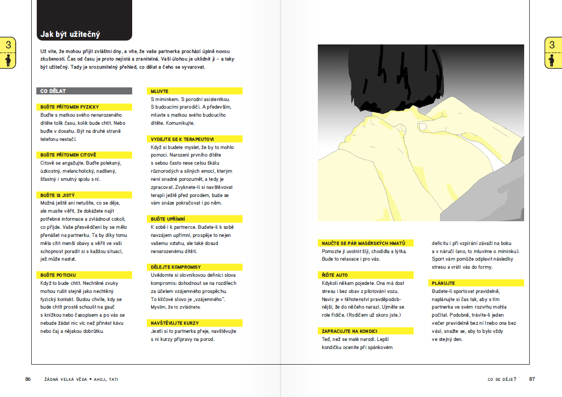 Tip pro partnerky prvo-tatínků: Příručka Ahoj, tati jako dárek pro vašeho partnera je naprosto ideální. Nejen, že ho neurazí, protože je psána a ilustrována muži pro muže, ale především: pomůže vám z něj udělat dokonalého a pyšného tatínka, který vás i vaši nastávající rodinu bude milovat navzdory všem starostem. Bude vám totiž lépe rozumět, což je to, co potřebujete. Ahoj, tati je přímočaré čtení bez složitých odboček. Vychovávat děti sice není vždy snadné, ale s dobrou příručkou to není ani žádná velká věda. Ahoj, tati je knížka, která tu chyběla.
