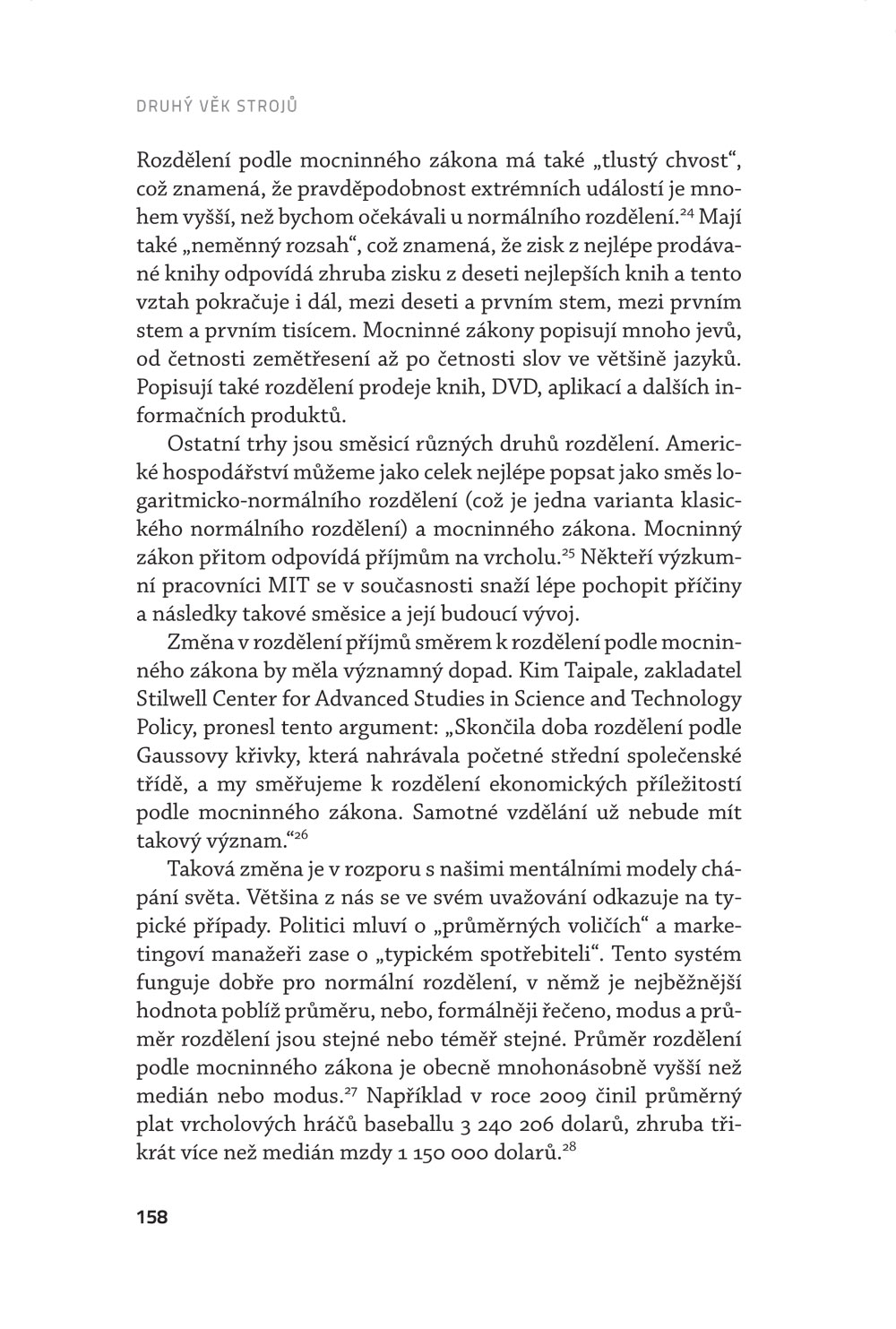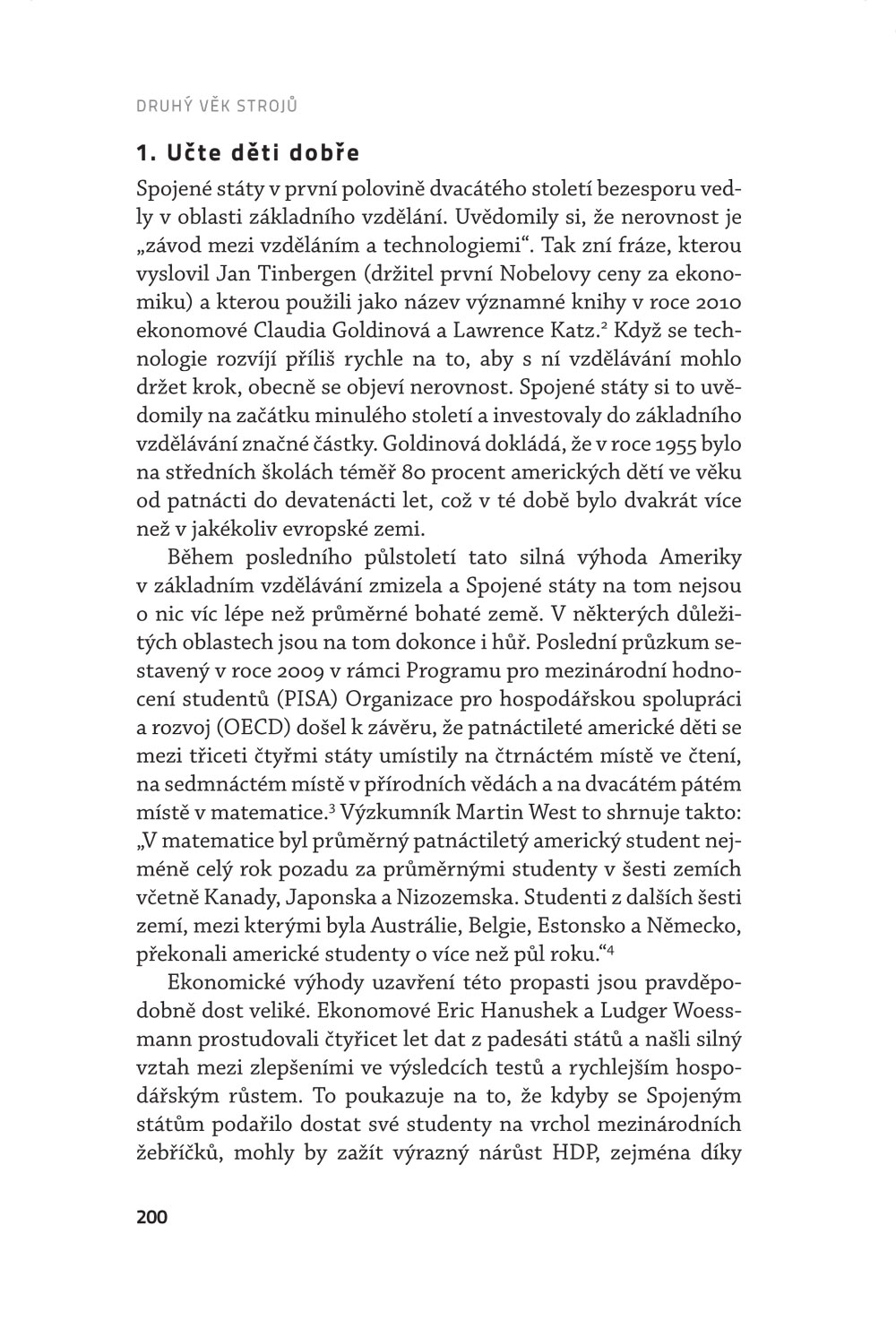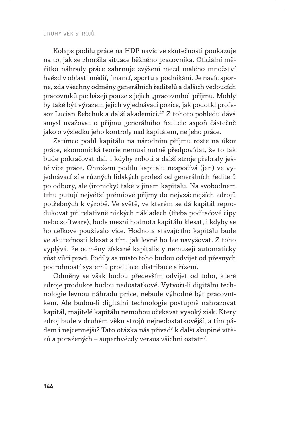 „Technologická změna na začátku 21. století hraje v ekonomických debatách stejně důležitou roli jako globalizace na konci 20. století. I dlouho po finanční a hospodářské krizi budou problémy zmíněné v této důležité knize mít zásadní význam pro náš život a politiku.” – Lawrence H. Summers, profesor z Harvardovy univerzity
