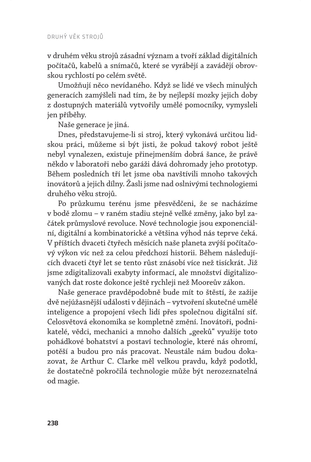 Žijeme v době úžasného pokroku v oblasti digitálních technologií. Naše generace zdědila více příležitostí ke změně světa než všechny generace před ní. S novou knihou Brynjolfssona a McAfeeho objevíte blízkou budoucnost a vstoupíte do druhého věku strojů vybaveni informacemi, které vám a vašim dětem pomohou uspět.