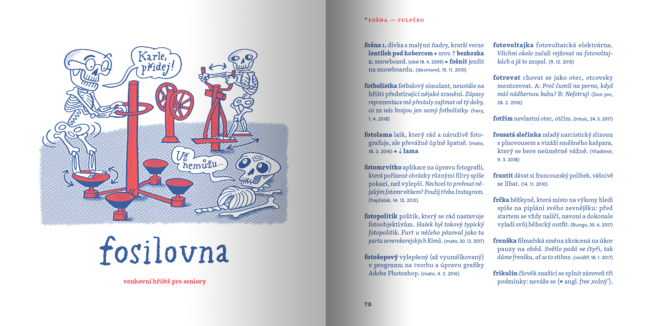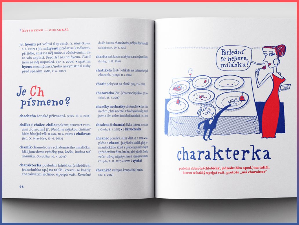 Kromě slovníkového „best-off“ v knize najdete taky povídání zakladatele slovníku Martina Kavky s devíti osobnostmi, pro něž je současná čeština pracovním nástrojem. O tom, jak si s jazykem hrají a jaké v nich vzbuzuje emoce, vyprávějí blogerka, copywriterka a markeťačka Michelle Losekoot, lektor tvůrčího psaní René Nekuda, herec Jan Zadražil, básník a twitřan Petr Kukal, překladatelka Anežka Charvátová, sloganistka Lenka Papřoková, stand-up komik Pavel Tomeš, lingvistka Michaela Lišková a jazykozpytec Jiří Marvan.