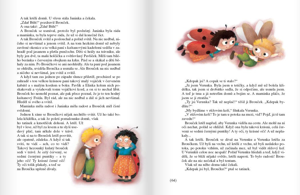Je to k neuvěření, ale o svatojánských broučcích Jana Karafiáta si děti poprvé četly už před sto třiceti lety. Přesto příběhy nezbedného Broučka a jeho blízkých okouzlují i dnešní malé čtenáře. Právě jim patří toto neobyčejné vydání Broučků s mnoha krásnými ilustracemi Vlasty Baránkové a vloženým loutkovým divadélkem, které si děti snadno vystřihnou a složí. A pak šup do pohádkového světa hrát si a vymýšlet, co vše by se broučkům ještě mohlo přihodit!