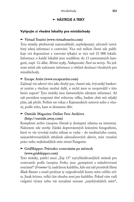 Že po žádné radikální změně svého života netoužíte? Přesto vám doporučujeme knihu přečíst – je přímo našlapána neobyčejnými postřehy a praktickými tipy, které jinde nenajdete. A je velmi vtipná.