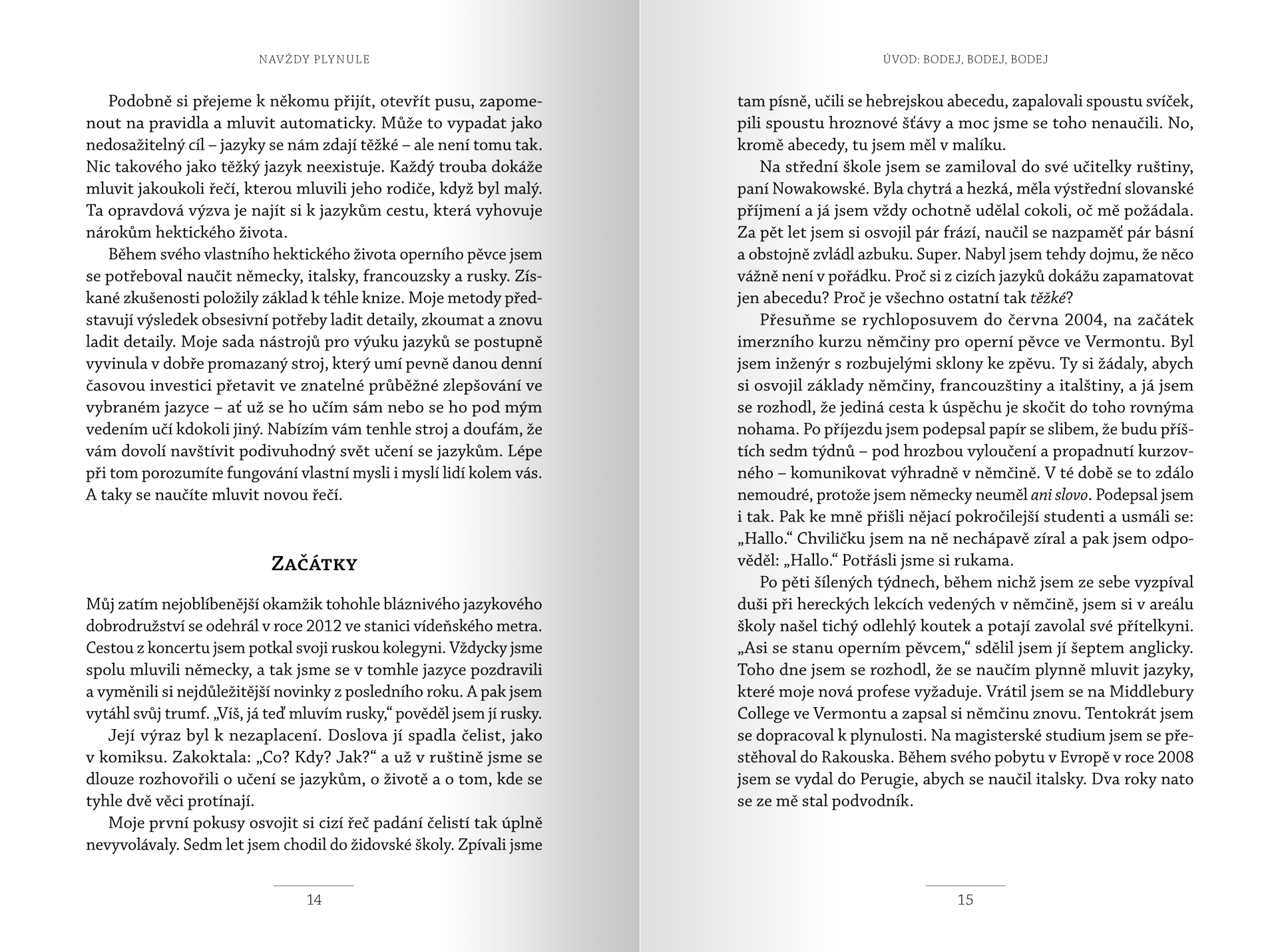 Autor Navždy plynule vzal to nejlepší ze známých přístupů k učení se jazykům, rozebral je na prvočinitele, přidal poznatky o vývoji řeči a funkcích paměti, a vše propojil s moderními online nástroji pro poslech a pro komunikaci s rodilými mluvčími. Vy sami si pak díky konkrétním návodům, postupům a tipům vytvoříte efektivní soukromý kurz na míru, který změní navždy vaše naslouchání, mluvu, ale zejména způsob uvažování o cizí řeči. Protože už nikdy nebudete překládat, vy budete v novém jazyku rovnou myslet.