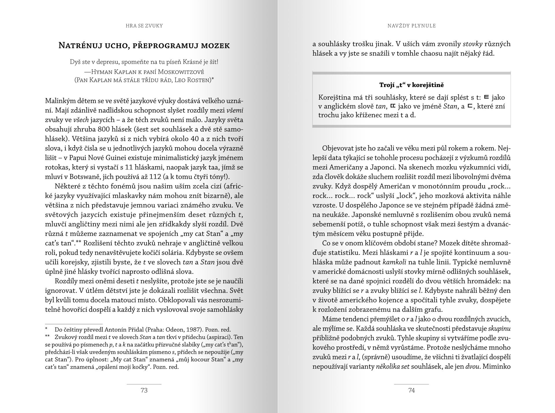 - Jak naladit uši, aby slyšely zvuky vaší nové řeči, a jak trénovat pusu, aby je dokázala vyslovit.