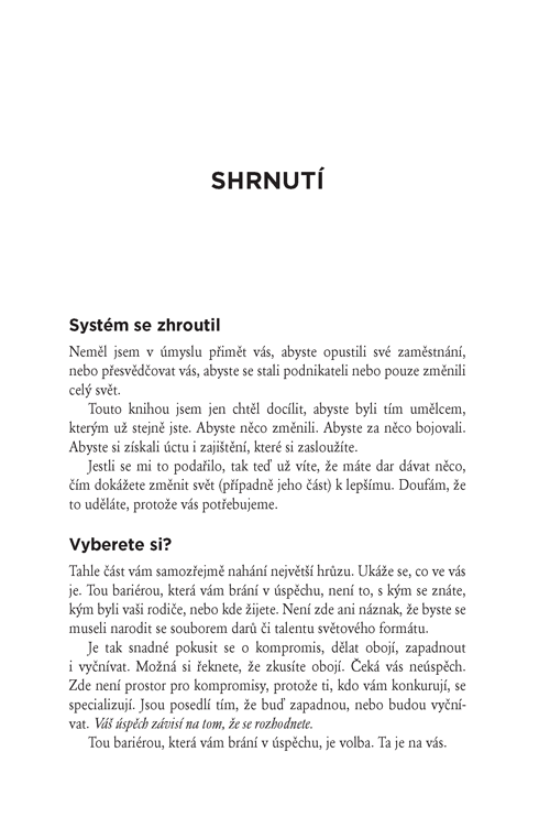 – BusinessWeek„Kdyby Seth Godin neexistoval, museli bychom si ho vymyslet – tak je nepostradatelný! V rukou držíte čtivou, podmanivou a smysluplnou knihu. Přečtěte si ji a prokážete si tím velkou laskavost. Vaše budoucnost vám poděkuje.“