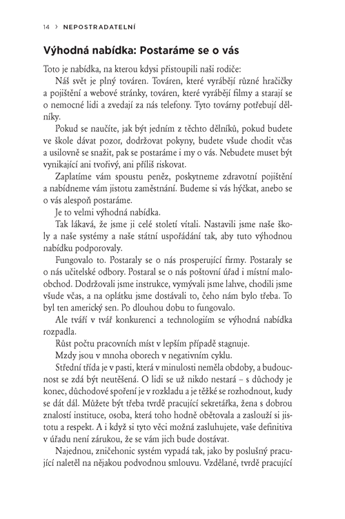 Svět se změnil a stal se jednou velkou supersoutěží. Pokud v ní chceme obstát, nemůžeme být snadno nahraditelným ozubeným kolečkem v soukolí firmy. Musíme být jejím nepostradatelným pilířem. Jen takoví lidé dostávají nejlepší práci, plat, uznání i největší svobodu.