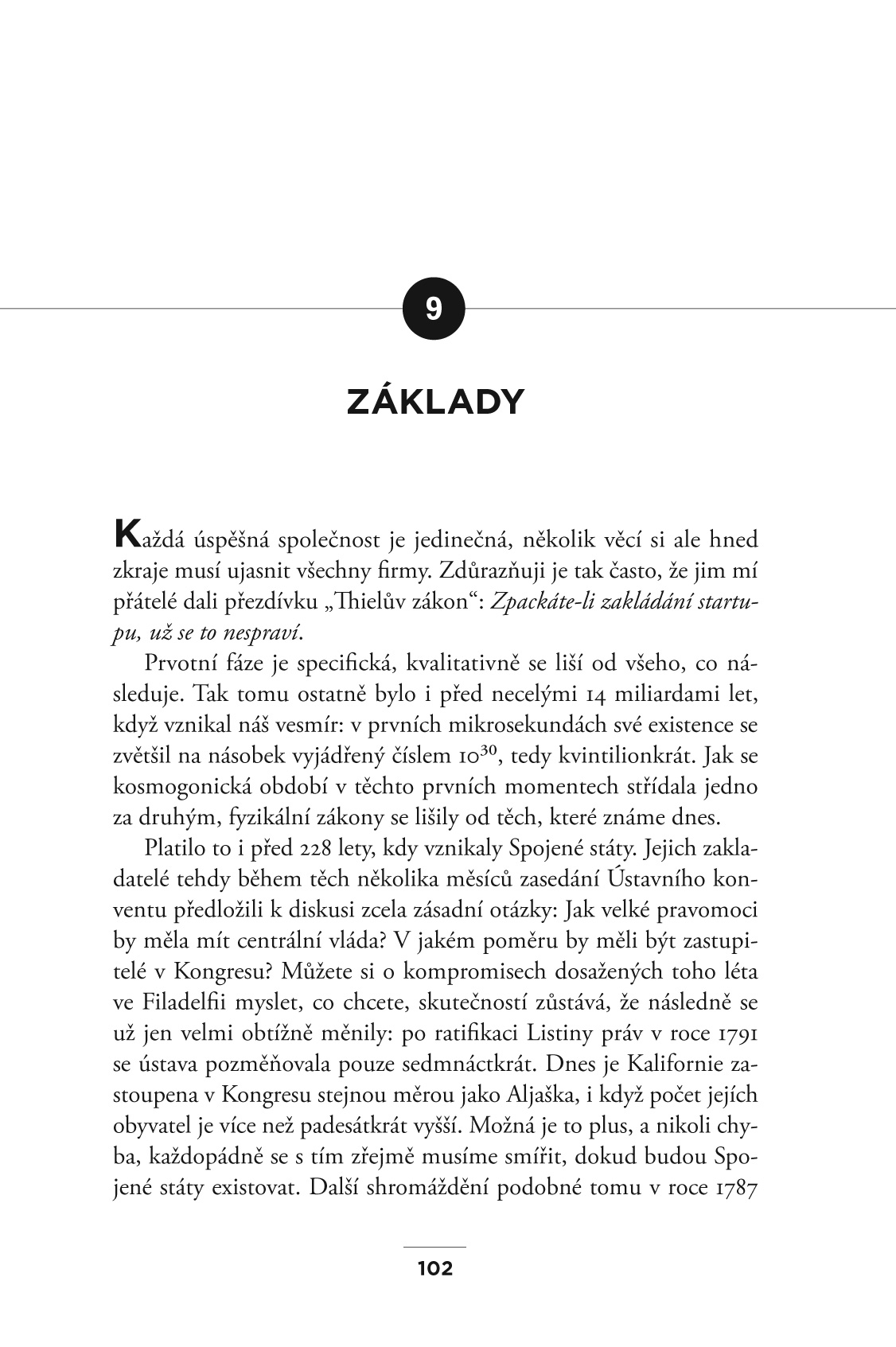 „Peter Thiel není jen úspěšným podnikatelem a investorem, ale také jedním z nejvýznamnějších veřejně známých intelektuálů naší doby. Chcete-li pochopit, proč tomu tak je a jak toho dosáhl, přečtěte si jako první krok tuto knihu.” – Tyler Cowen, profesor ekonomie na George Mason University a autor publikace Konec průměrnosti