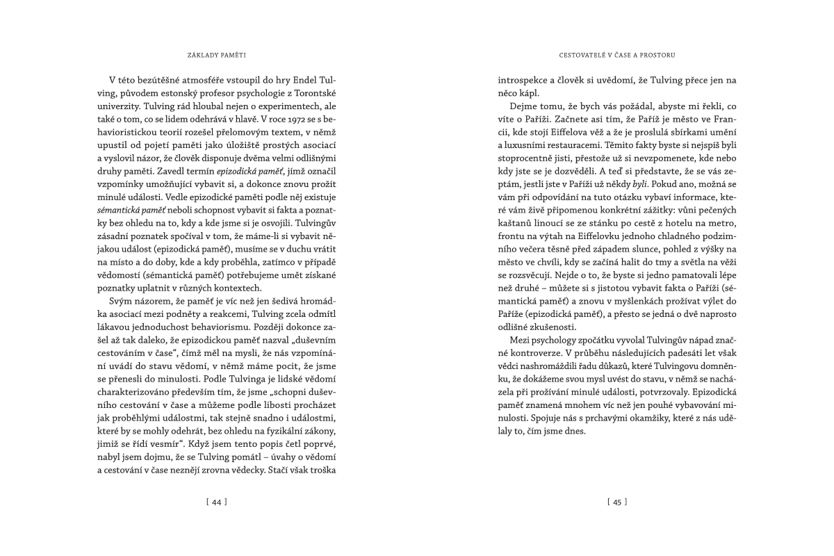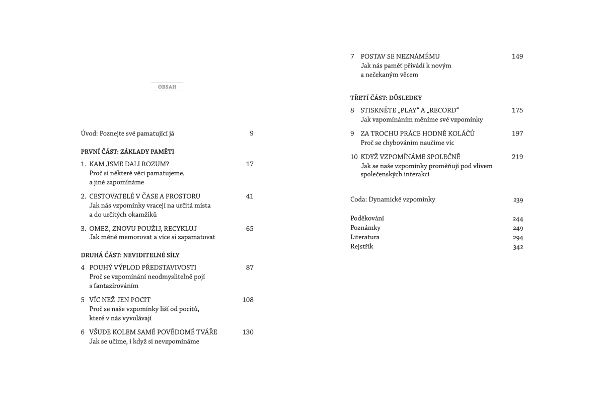 Neurovědec a psycholog Charan Ranganath na základě aktuálních výzkumů a poutavých osobních příběhů boří zažité mýty o vzpomínkách, zapomínání i efektivním učení. Odhaluje nejen způsob, jímž náš mozek pracuje s minulostí, ale především, jak tyto informace dále využíváme k porozumění sobě samým, ve vztazích nebo ke spřádání představ o budoucnosti.