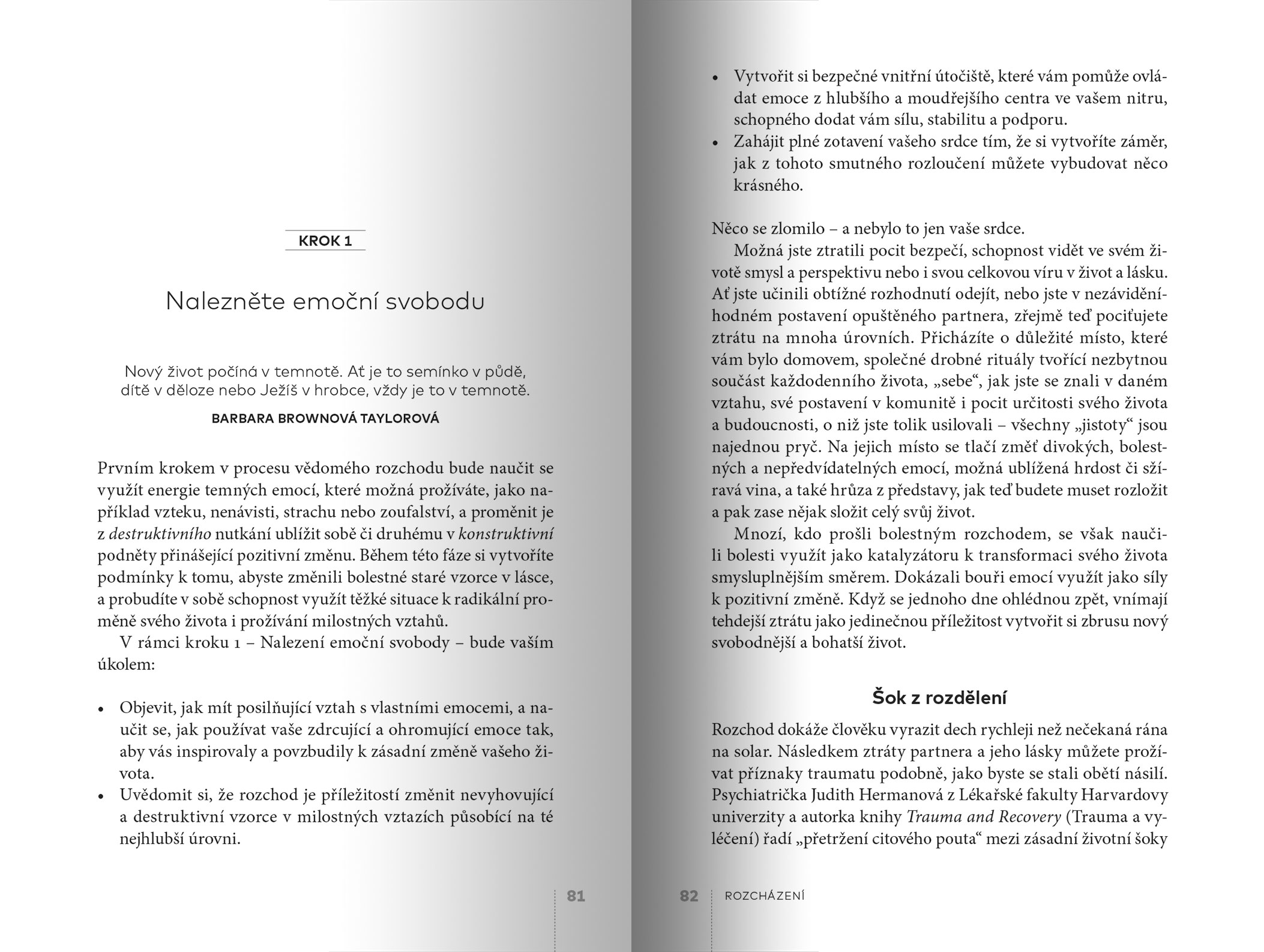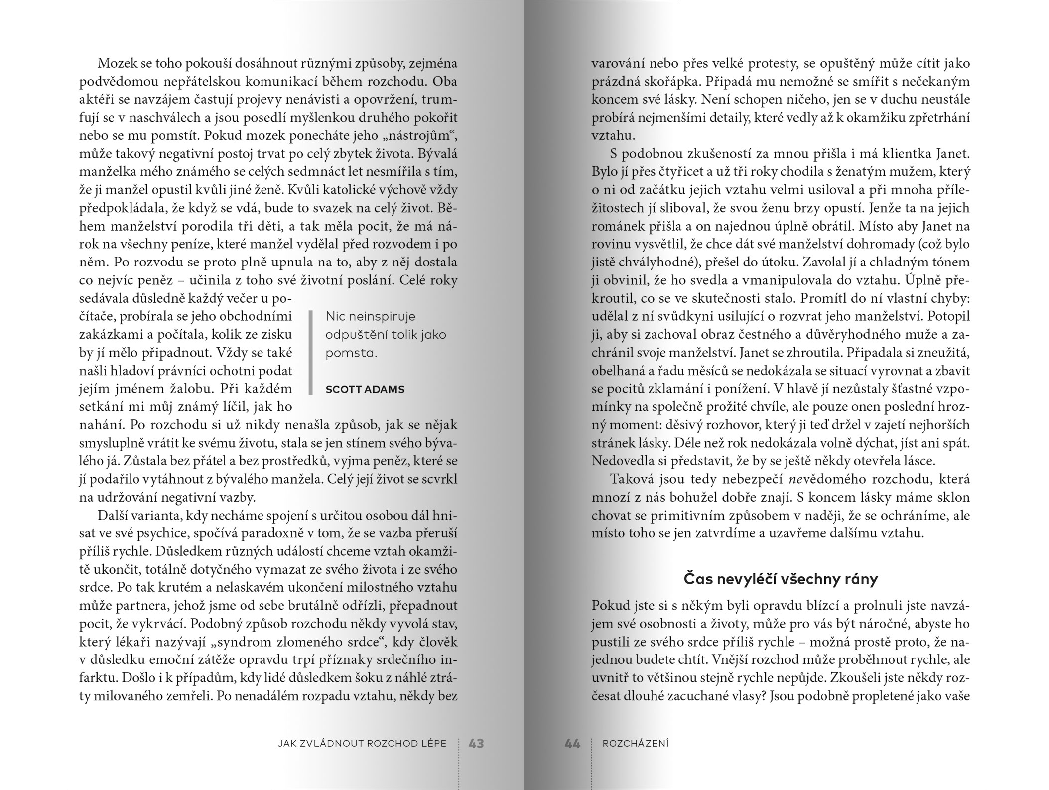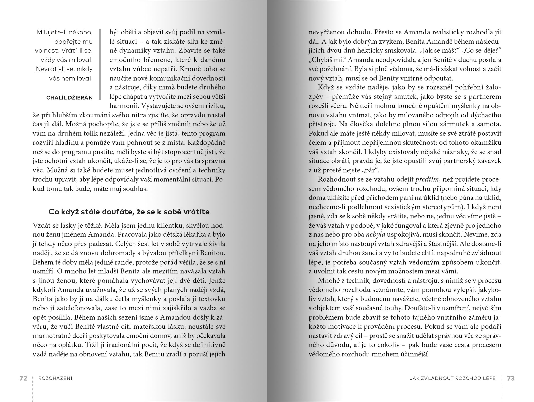 …„Cílem rozchodu není nutně dosažení spravedlnosti, získání odškodnění či potvrzení, že jsme měli pravdu. Cílem je osvobodit se a jít dál. Získat sílu vybudovat nový a šťastný život pro sebe i pro ty, na nichž nám záleží“…