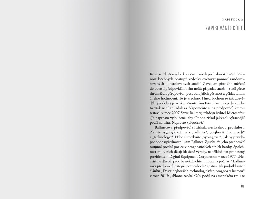 Z lepšího nahlížení do budoucnosti by měl prospěch každý, ať už jde o nákup akcií, sestavování politických opatření, uvádění nového produktu na trh nebo jen plánování jídelníčku na týden dopředu. Lidé však obecně předpovídají budoucnost velice špatně.