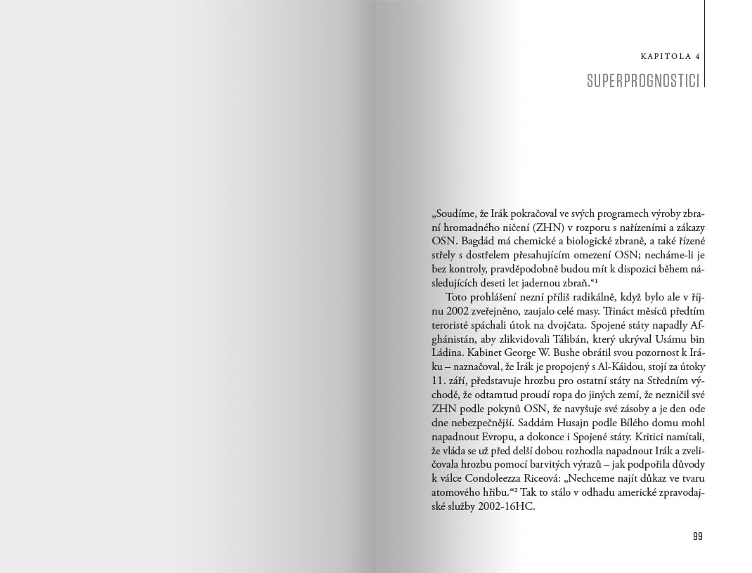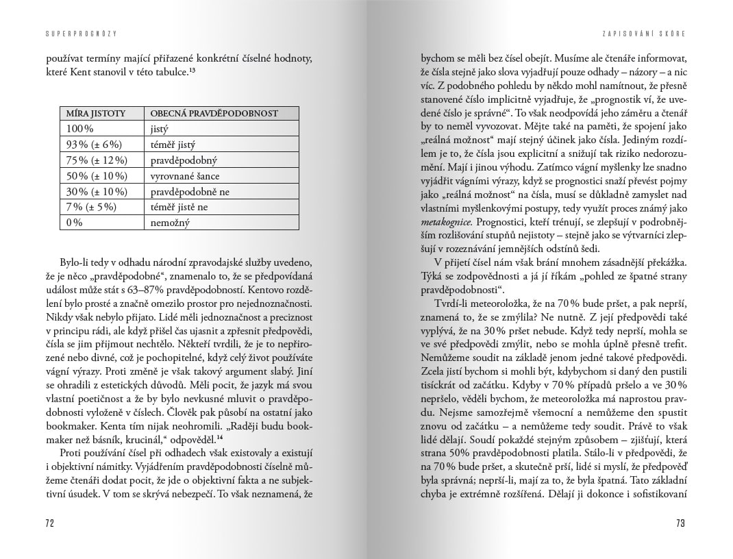 „Jak dobře můžeme ve skutečnosti předpovídat budoucnost? Tuto otázku nejlépe zodpovíte tak, že si přečtete tuto knihu. Ztratíte iluze ohledně schopností expertů, ale zároveň vás nadchne způsob, jakým postupují nejlepší prognostici – a možná vás kniha motivuje k vlastním prognostickým počinům.“ – Tyler Cowen, ředitel George Mason University Mercatus Center a autor knihy Average is Over