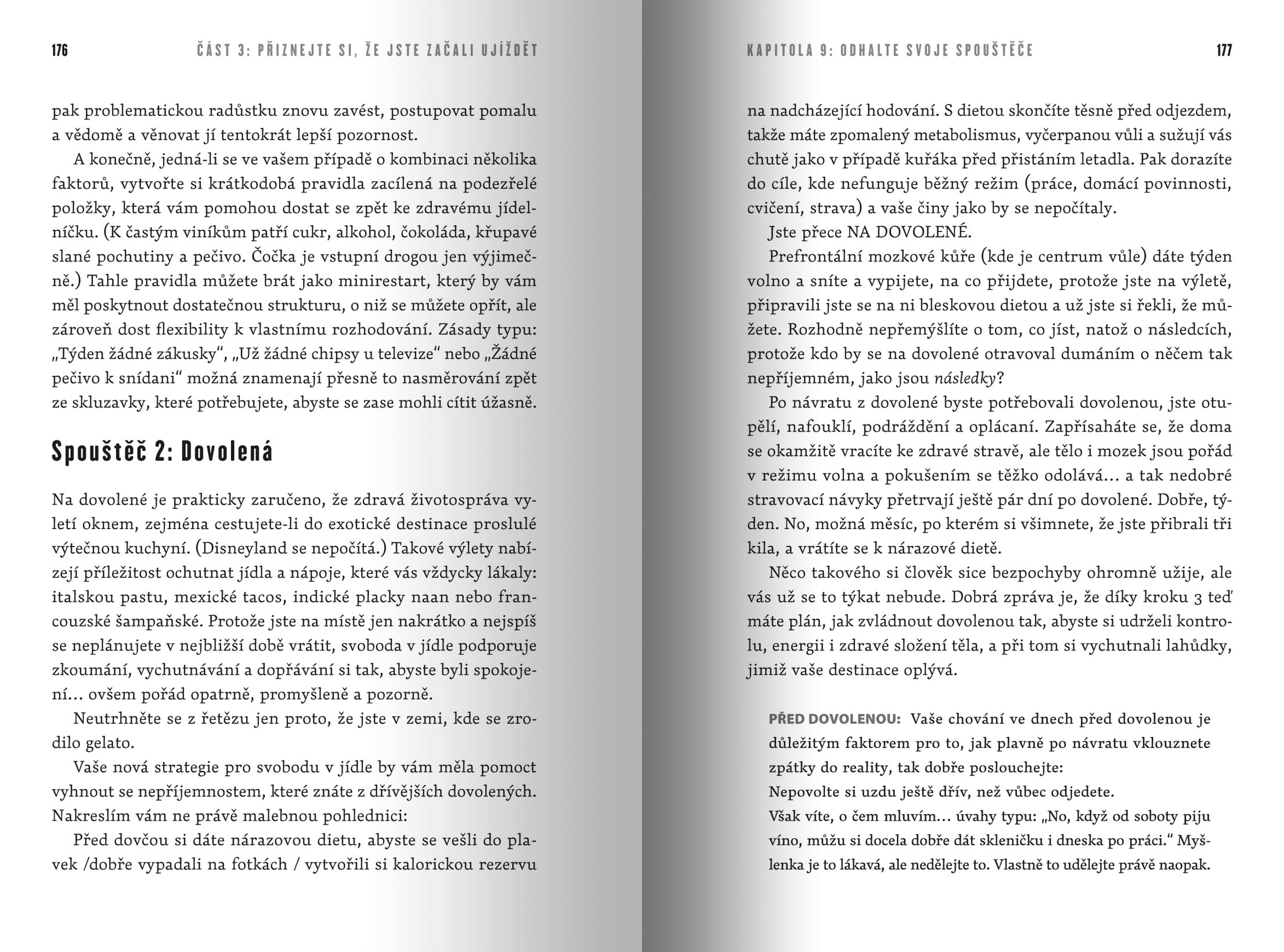 Díky této knize odhalíte svoje nevhodné stravovací návyky, rozpoznáte spouštěče související s jídlem a dokážete zvládat pokušení. Naučíte se odhadnout, kdy hrozí, že sklouznete zpátky do starých kolejí, a jak tomuto nebezpečí zabránit. Dozvíte se taky, jak s přehledem zvládnout relapsy a vrátit se na cestu za svými zdravotními cíli, nebo jak mluvit o svém novém životním stylu s rodinou a přáteli.