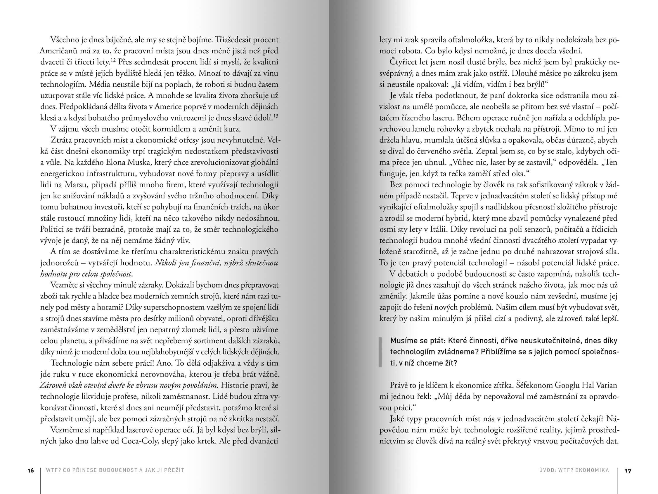 Technologický vývoj nabírá tempo, celá společnost stojí na rozcestí a my se užasle ptáme: WTF? Co se to děje? Připraví nás roboti o práci? A když ne roboti, tak obří společnosti typu Uber a Amazon? Zničí fake news demokracii? Vzbouří se nakonec umělá inteligence jako Skynet ve filmu Terminátor?