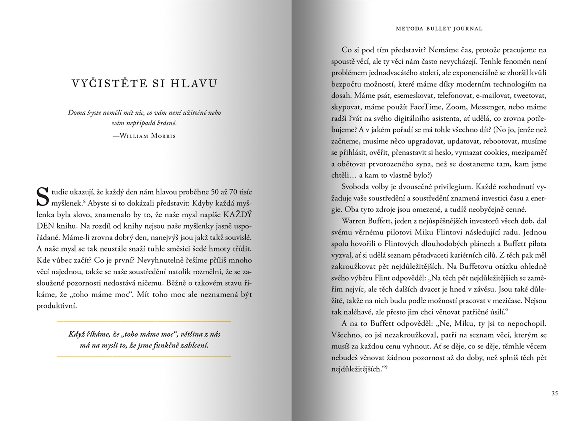 Metoda Bullet Journal vznikla pro uvědomění toho, jak využíváme dva nejcennější životní zdroje: čas a energii. Uděláte díky ní víc práce, protože toho budete dělat méně. Zasloužíte si to.