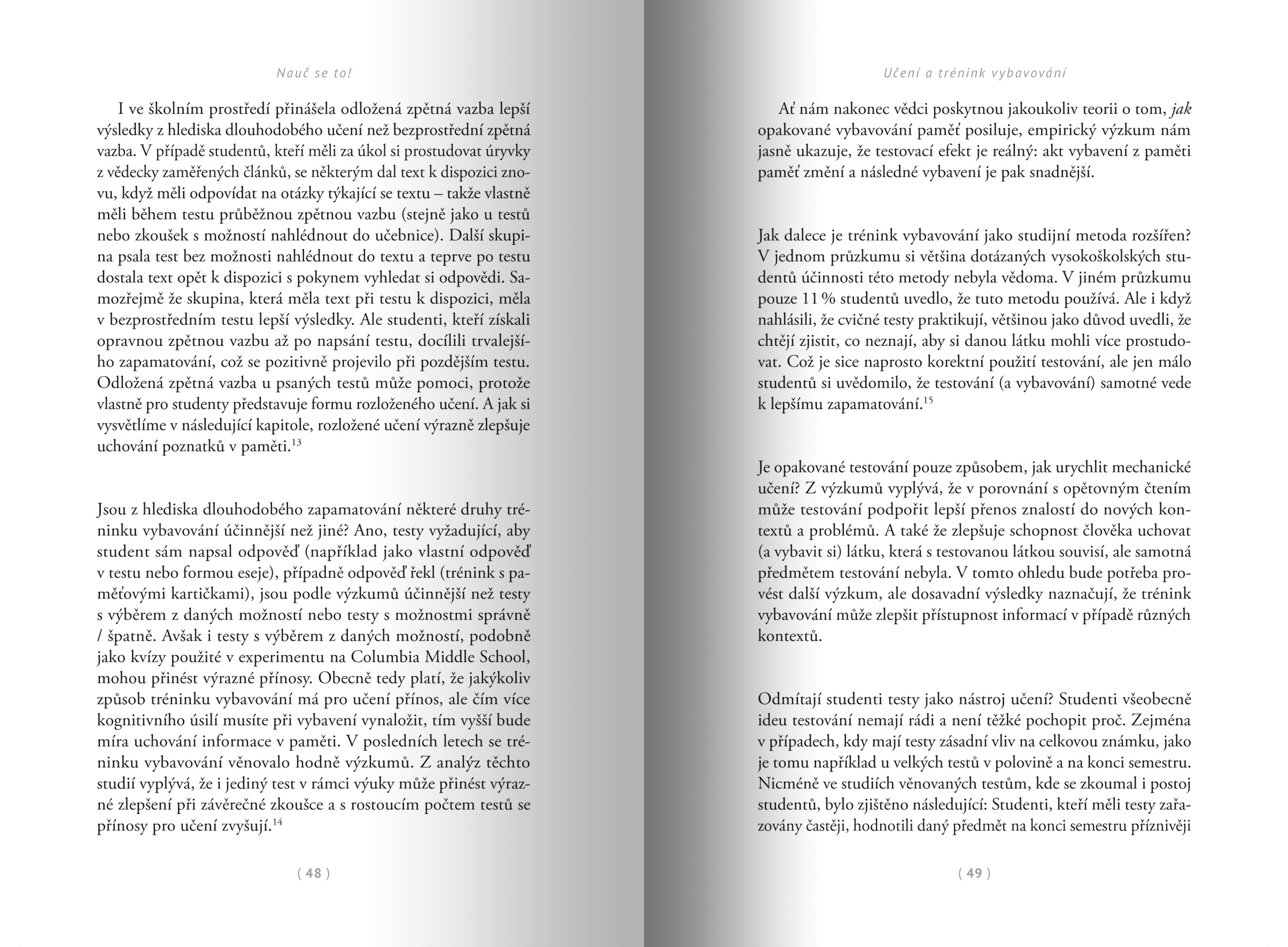 Je velká škoda, že tu tato kniha nebyla mnohem dříve, protože mě dovedla ke zjištění, že jsem se učil velmi neefektivně. Většina škol a univerzit má ve svých osnovách „co se učit“, ale už paradoxně neumí vysvětlit „jak se to učit“. Autoři předkládají čtenářům nejnovější poznatky za 40 let výzkumů a studií, jaké metody učení přináší ty nejlepší výsledky. Tuto publikaci považuji za povinnou četbu na všech školách, MŠMT by jí mělo věnovat zvýšenou pozornost! — Martin Krpata, recenzent