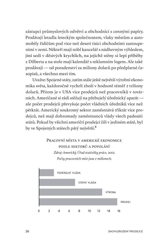 Neotřelá a překvapivě užitečná kniha zkoumá a objevuje sílu prodejních schopností, kterou nakonec používáme úplně všichni. A zejména mimo oblast přímého prodeje. Vždyť v době vzestupu malých podniků, ve kterých všichni dělají to, co je právě potřeba, jsou všichni také prodejci, ať už o tom vědí, či ne.