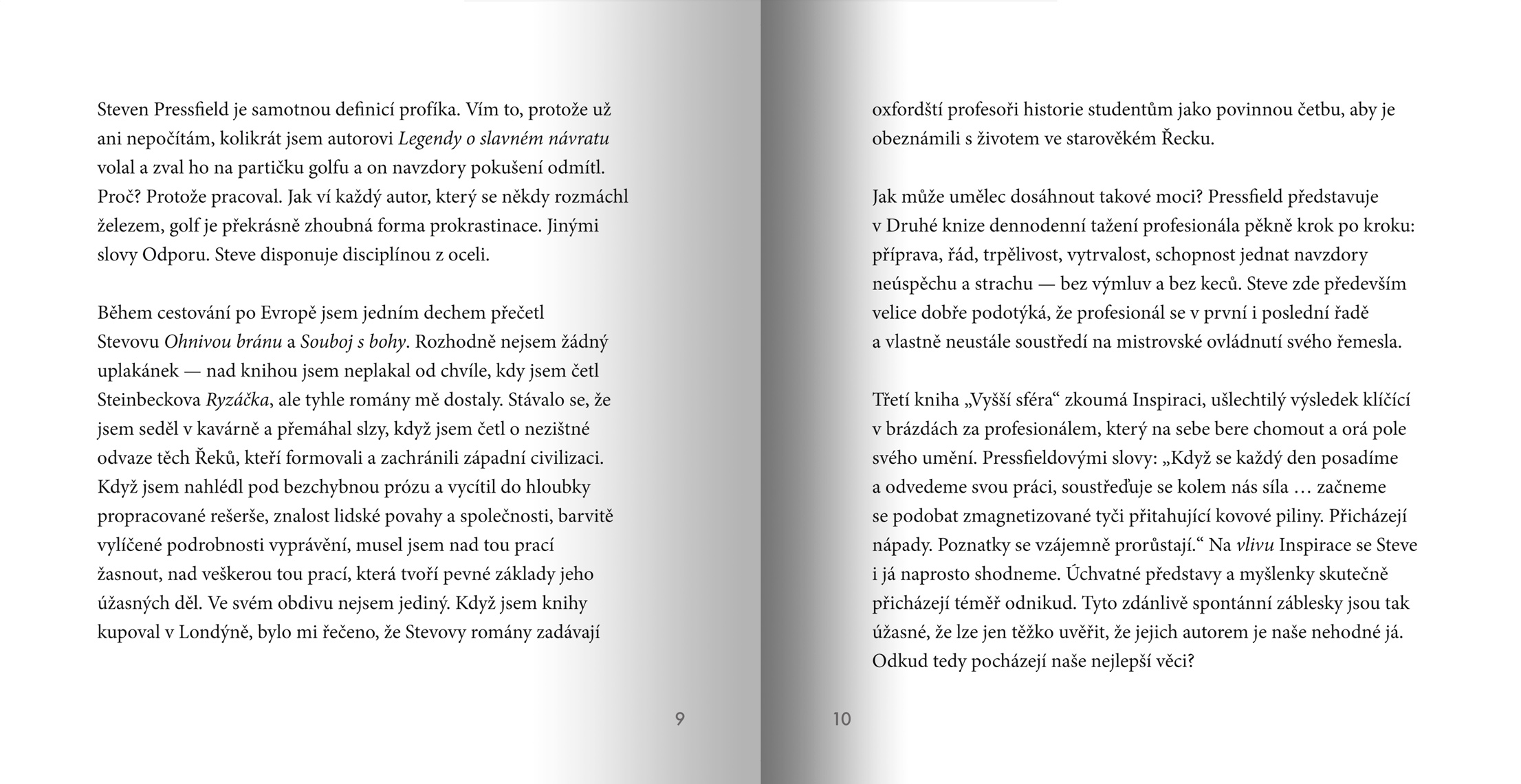 Kdo jiný by měl psát o tvorbě, než ten, kdo sám navzdory překážkám dosáhl světového úspěchu? Steven Pressfield, bestsellerový romanopisec historické prózy, napsal kromě románů a filmových scénářů i několik příruček o psaní a tvorbě samotné. Válka umění je z nich zdaleka nejslavnější: ač vyšla už v roce 2002, dodnes vévodí žebříčkům nejúspěšnějších knih o kreativitě. Stala se klasikou svého žánru, jakýmsi kánonem psavců a tvůrců všeho druhu, protože zdaleka není jen o psaní.